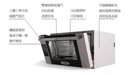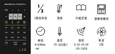 產品規格 尺寸:60*67*50 cm(W*D*H) 烤盤尺寸:460*330 m/m 電壓:220V,單相,3.45kW 溫度:+50~+260℃ 濕度:0-20-40-60-80-100% 烘焙段數:3 段 風速:2 段 層數:4 層(間距:75 m/m) 記憶組數:99 組 水管:Ø1/2"進水金屬球閥 重量:39 KG ※烤盤請自備或另購