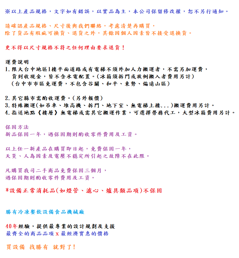 勝有冷凍餐飲設備食品機械廠,112年元月1日喬遷新店面,(新址:台中市北區中清路一段792號),舊雨新知敬請繼續支持愛護,屆時全館優惠特價促銷,廚房設備規劃,開店創業歡迎諮詢洽購,敬請把握機會,請趕快加入Line@(ID:@221uncrv)洽購!